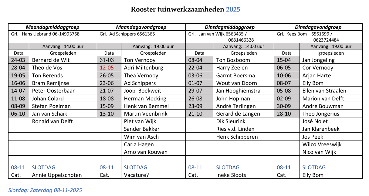 Rooster tuinwerkzaamheden 2025
